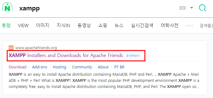 먼저 네이버에 xampp를 검색하신후 xampp 공식 홈페이지에 접속합니다.