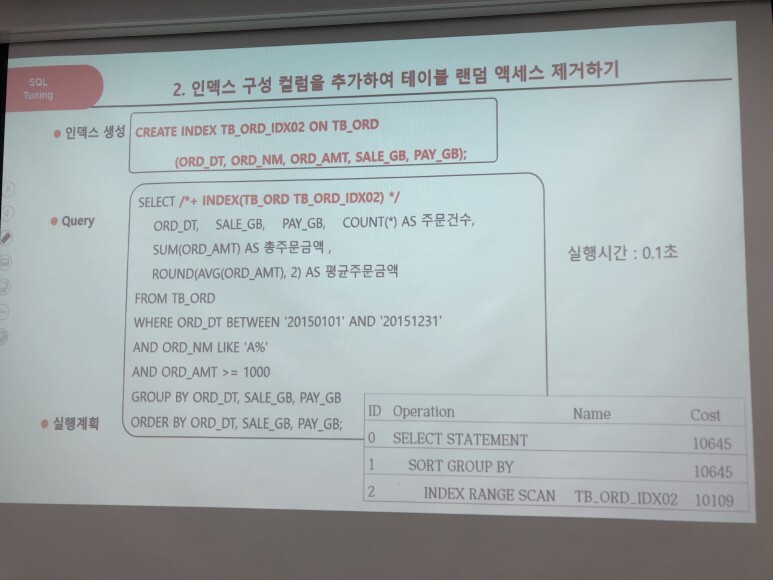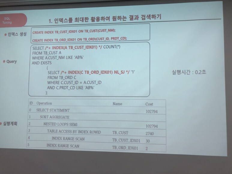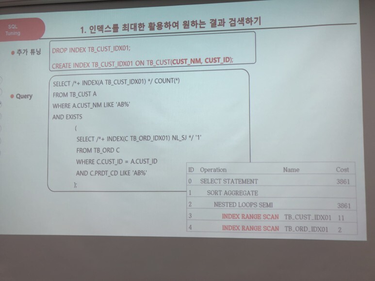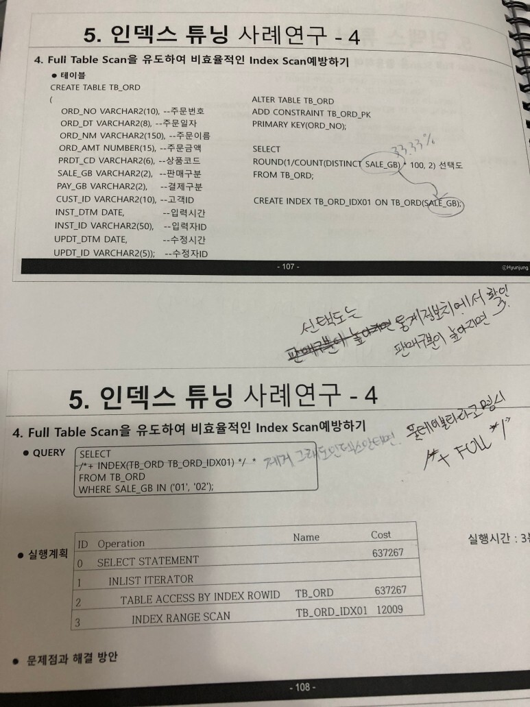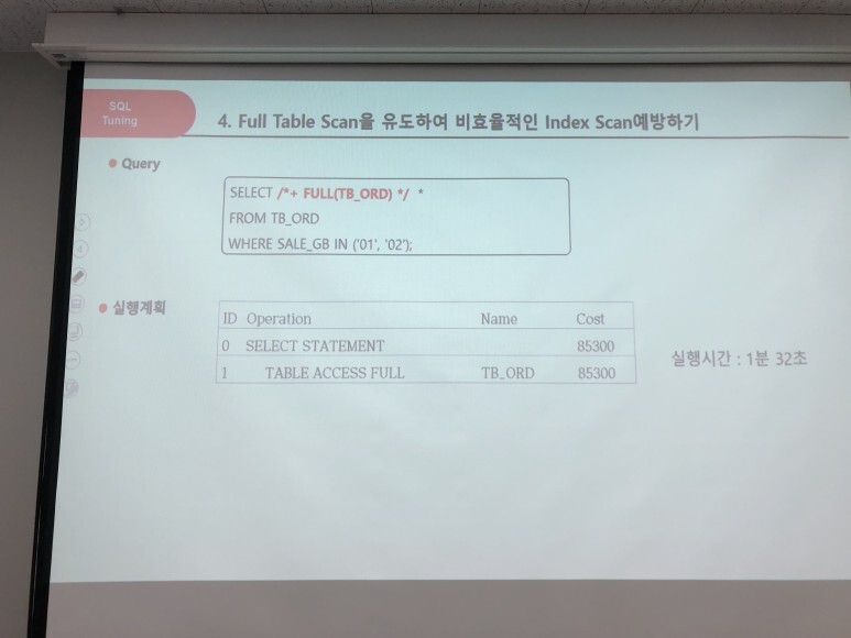 힌트는 웬만하면 안 쓰는 걸 권장한다 되도록 SQL에서 정리하자.