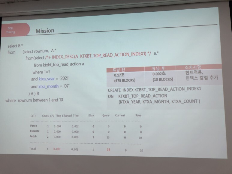 위 사례는 해당 쿼리만 사용했을 때의 튜닝을 한 것이다 현실은 훨씬 더 많은 것들이 얽혀있고 복잡하게 구현되어 있다.