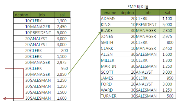 인덱스 구성을 deptno + sal에서 deptno + job + sal로 변경했을때 엑서스의 변화