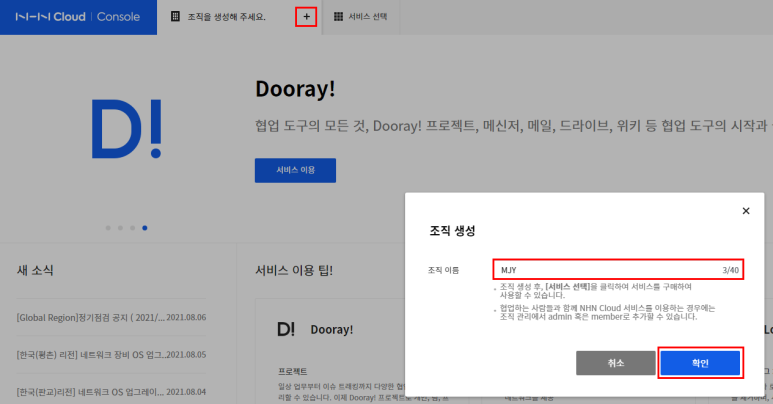 먼저 자신의 조직을 입력합니다. 저는 간단하게 저의 이름 이니셜로 설정하였습니다. 본인의 목적에 맞게 작성하시면 됩니다