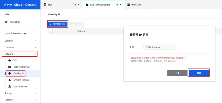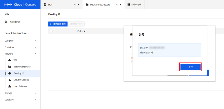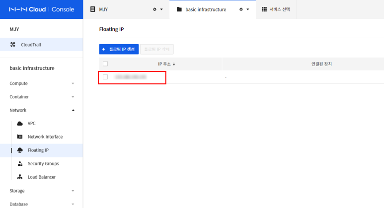 플로팅 IP가 정상적으로 생성된 걸 볼 수 있습니다.