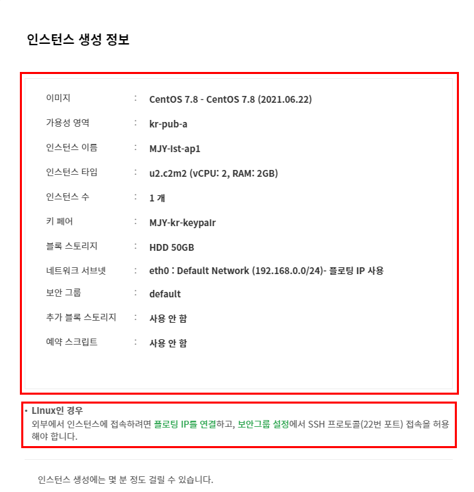인스턴스 정보도 자신이 구분하기 편하게 작성하시면 됩니다.