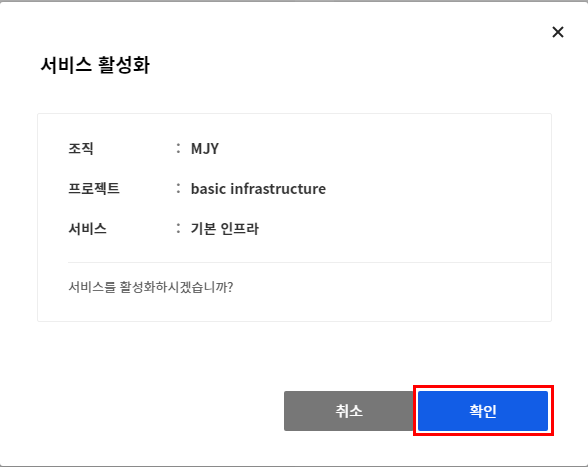 저는 기본 인프라로 설정하였습니다.