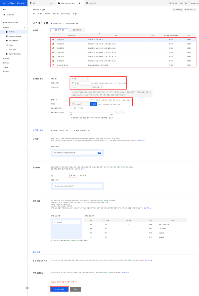 사실 web, was 서버를 하나의 인스턴스와 플로팅 IP, 메일 서버에 하나의 인스턴스 플로팅 IP, 데이터베이스 하나의 인스턴스로 돌려야 이상적이긴 하지만 비용 때문에..