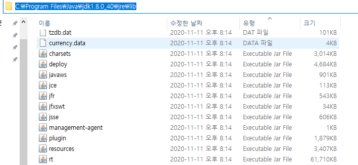 해당 JDK는 1.8버전이며 다른 버전과 디렉터리 구조가 다를 수 있습니다.