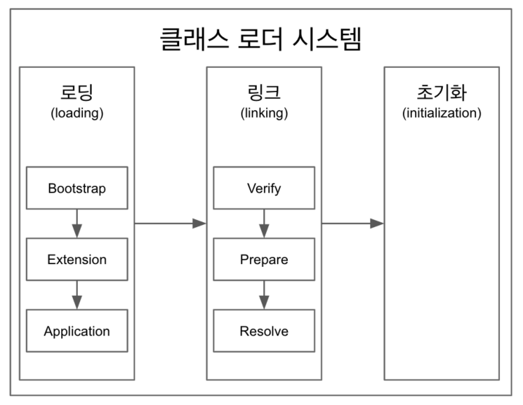 사진과 같이 클래스 로더 시스템은 로딩 > 링크 > 초기화 순으로 진행이 됩니다.