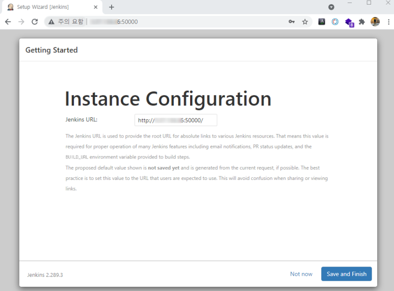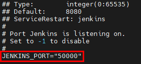 Jenkins 디폴트 포트는 8080입니다. 톰캣과 겹쳐서 저는 임의로 50000번 포트를 주었습니다.