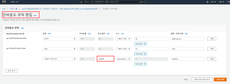 AWS 인바운드 규칙에도 50000번 포트를 허용합니다.