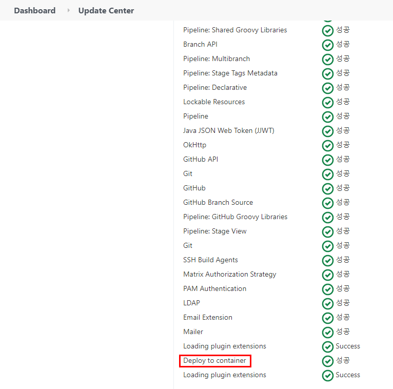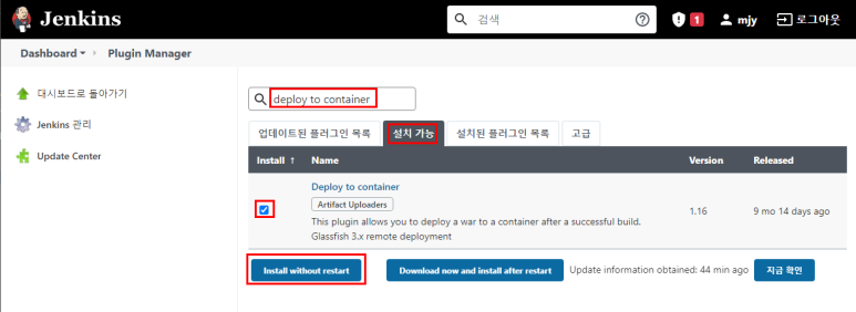 플러그인 관리에서 deploy to container라고 검색하시면 관련 플러그인이 나타납니다.