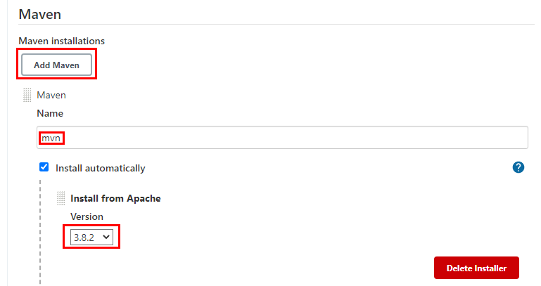 파란 테두리인 Build 영역에 maven을 사용하신다면 invoke top-level Maven targets을 추가하신 다음 위에서 작성하신 maven 정보를 선택하시면 됩니다.