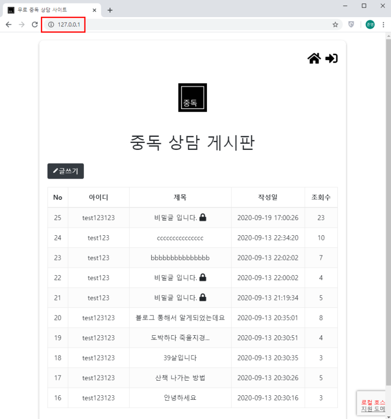 아마 설정을 하지 않았다면 xampp 관련 사이트가 나올듯 합니다